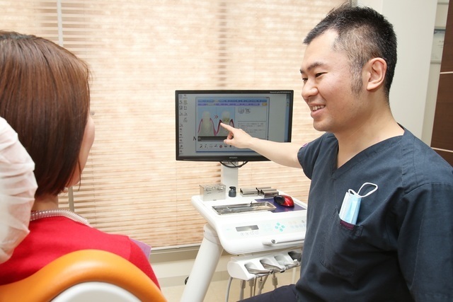 続いて、治療の計画をご説明いたします。撮影したレントゲン写真やお口の中を映した写真などを用いながら、患者様のお口の状態をわかりやすくご説明します。続いて、具体的な治療方法についてお話を進めてまいります。提案する治療方法のメリット・デメリットや、治療にかかる費用や期間に関してもお伝えしますので、納得できない点などございましたら遠慮なくご質問ください。